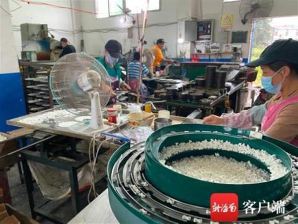 當(dāng)?shù)鼐用裨诂樚伶?zhèn)一家電子陶瓷廠內(nèi)工作。記者 張宏波 攝
